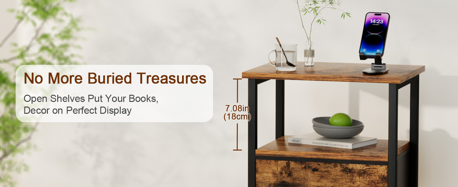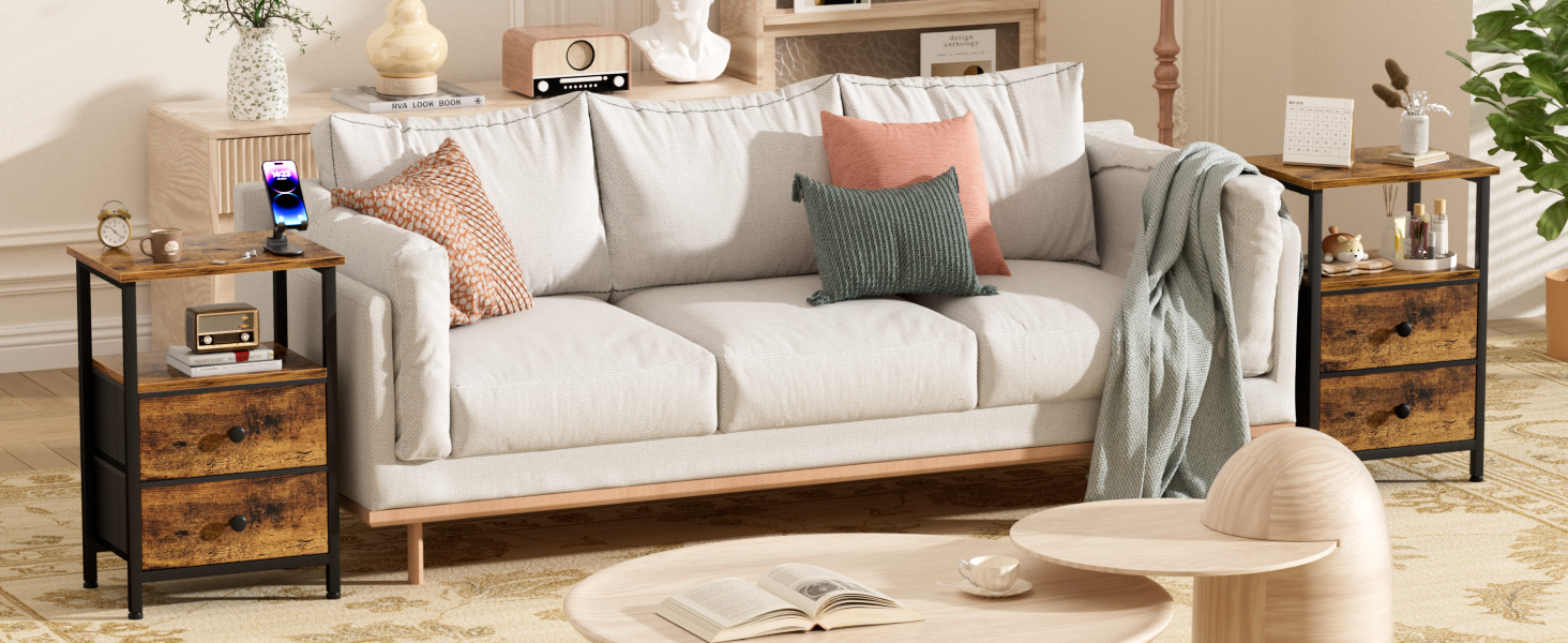 LOAKEKEL 带布艺抽屉的床头柜 复古棕色 HETS002BR-1