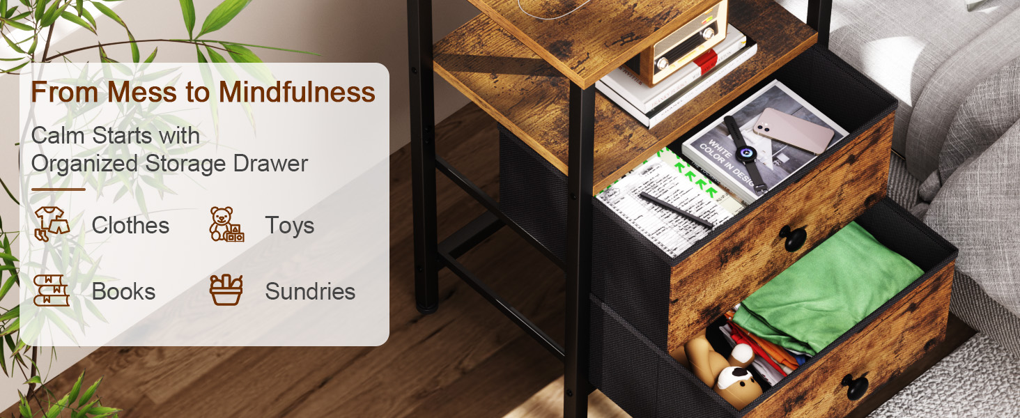 Fabric Nightstand Drawer with Generous Storage