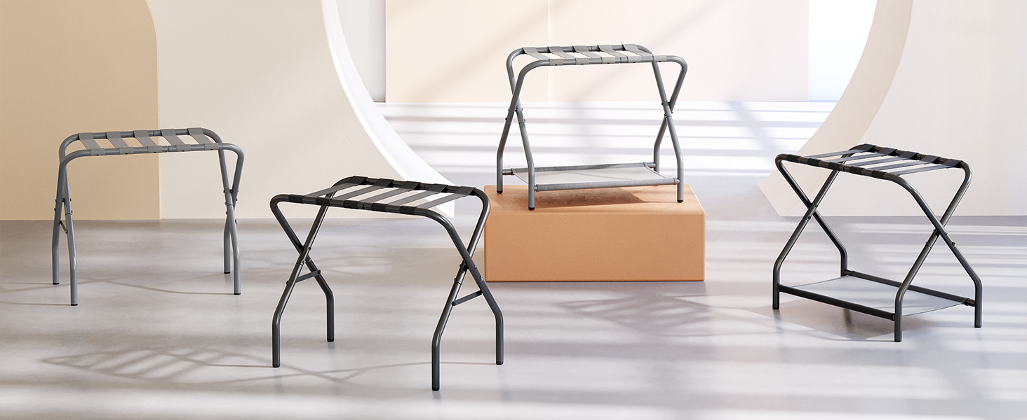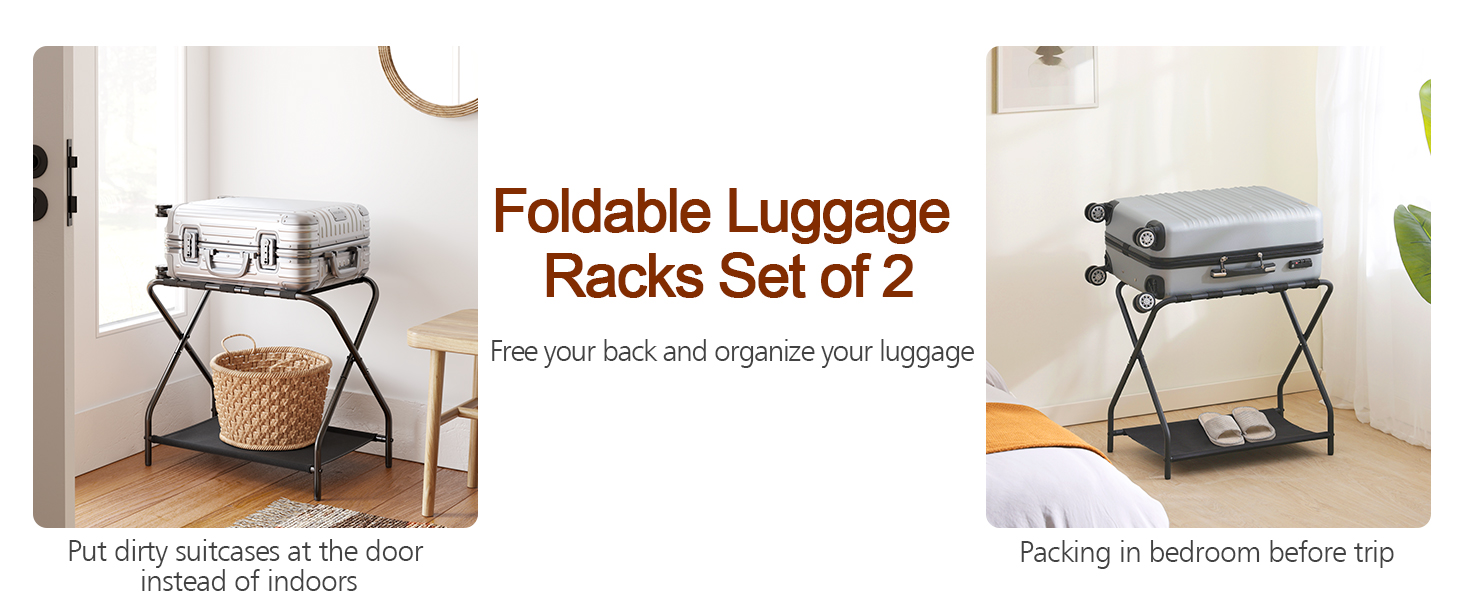 AMHANCIBLE Luggage Rack, Set of 2, Foldable Suitcase Stands for Guest Room, Metal Luggage Holder with Storage Shelf for Bedroom, Hotel, Easy Assemble, Black HLR02BK