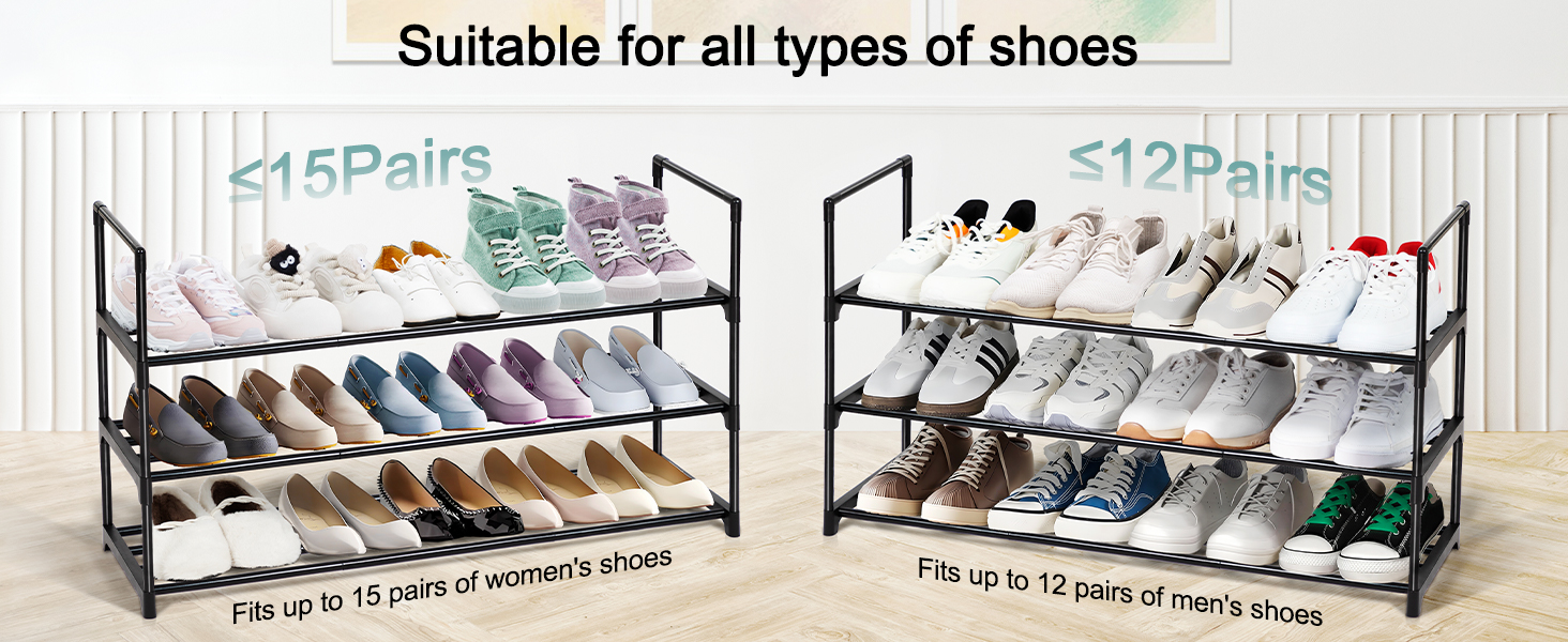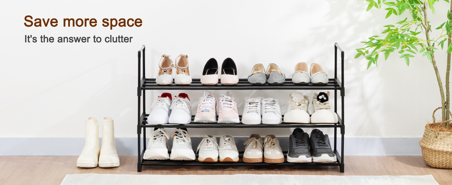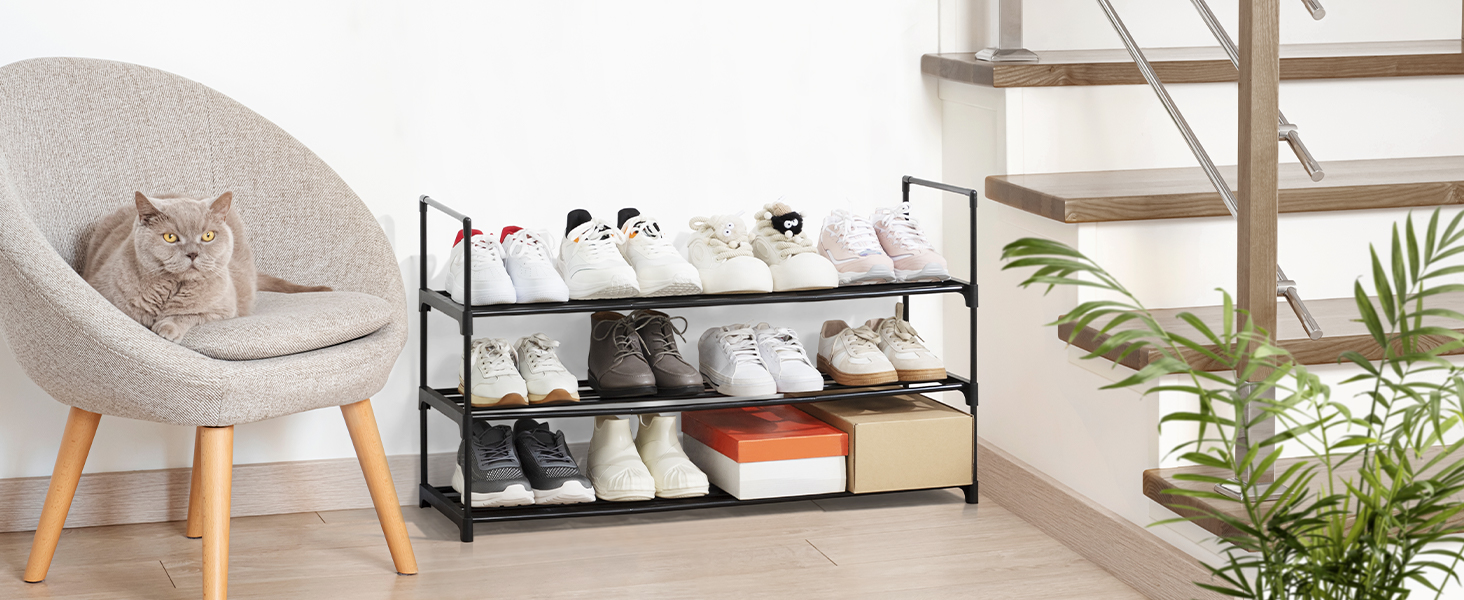 LOAKEKEL Shoe Rack, Black Metal 3 Tier Shoe Organizer for 16-20 Pairs, Space Saving Shoe Stand, Storage Shelf for Closet, Entryway, Hallway HSRM03BK