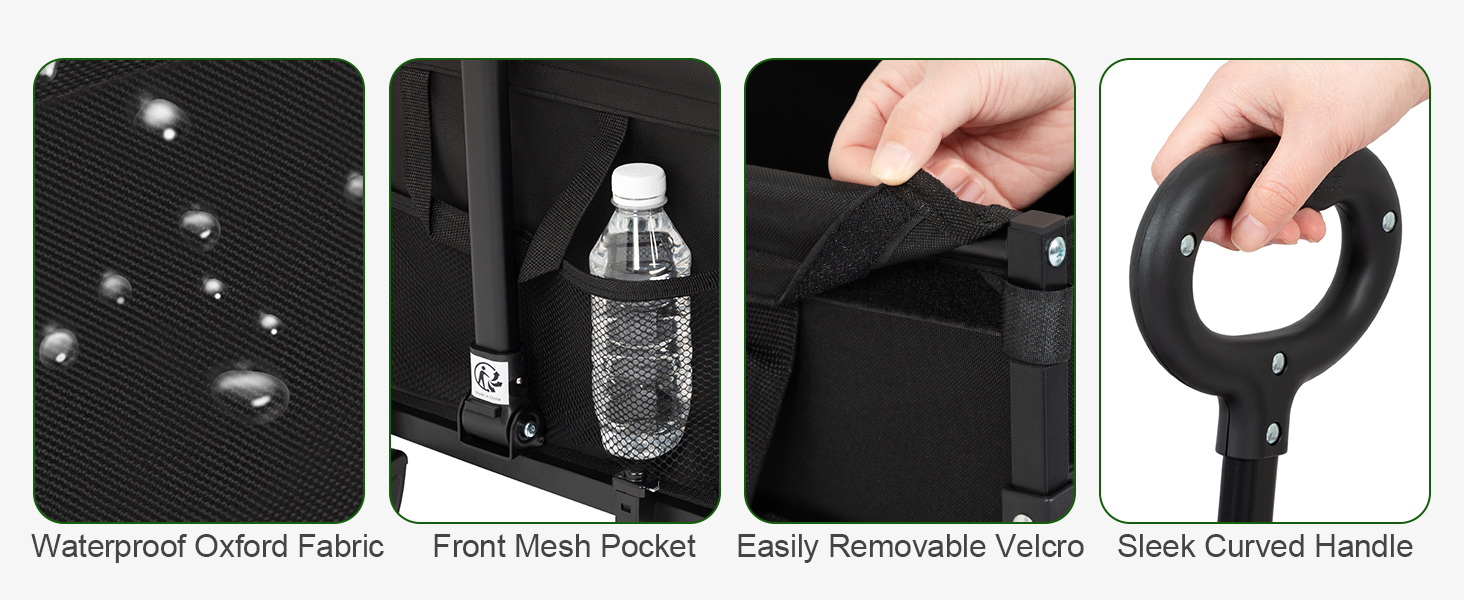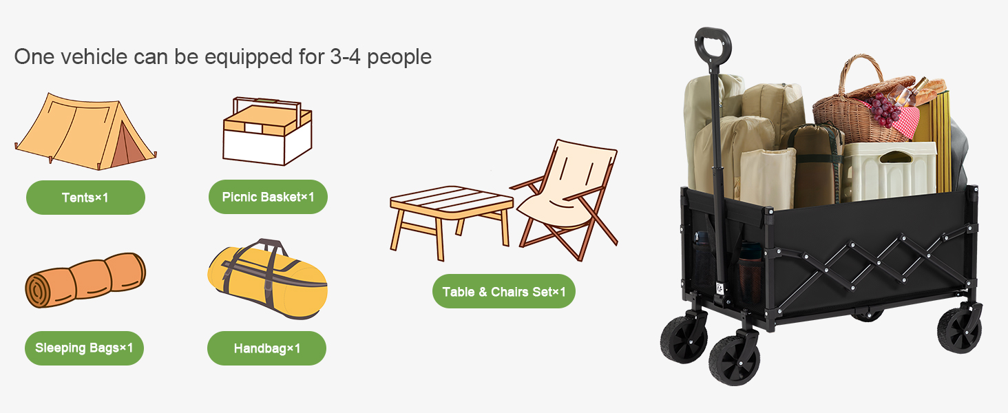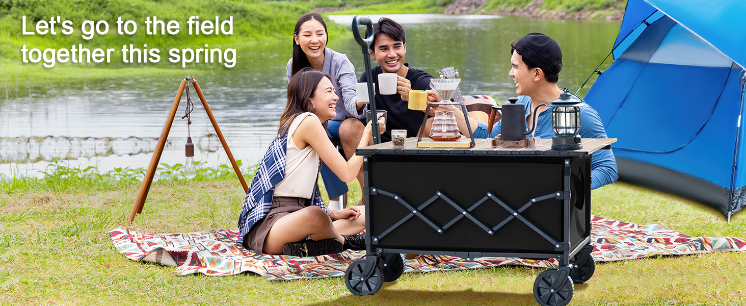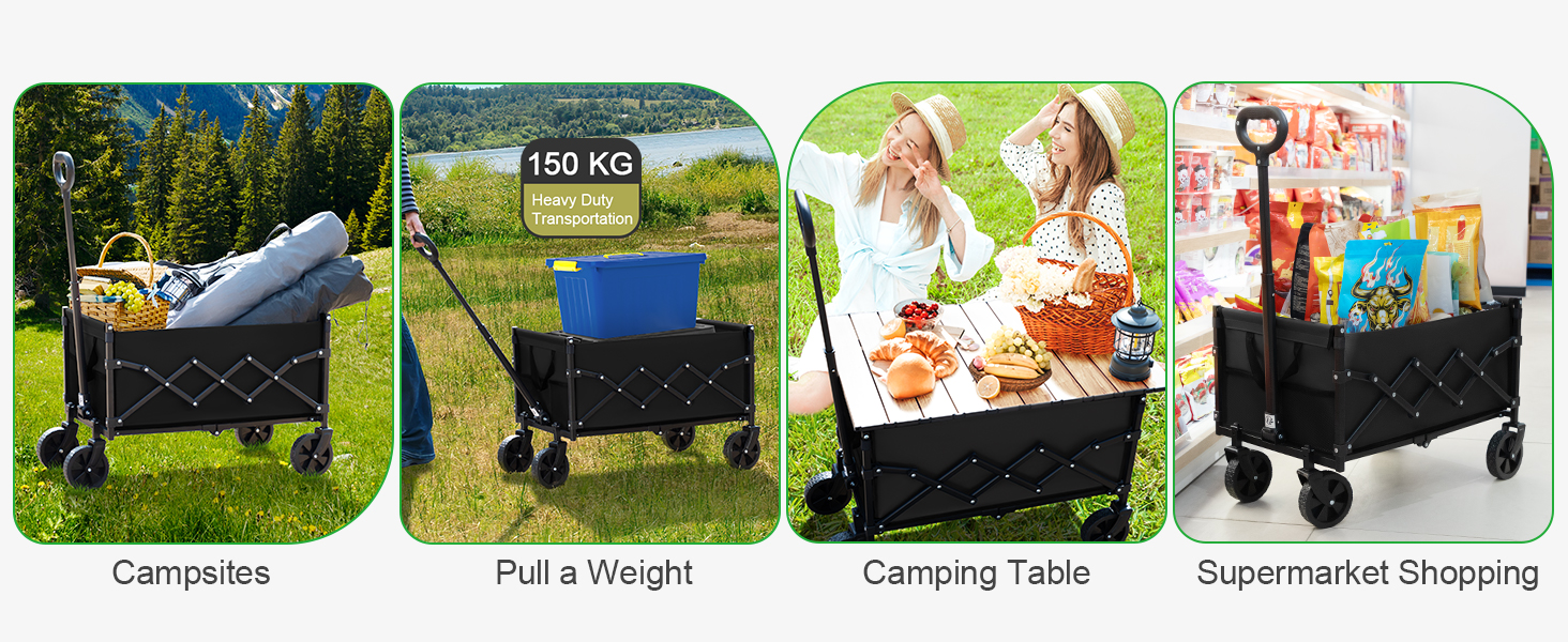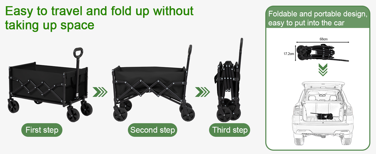 LOAKEKEL Wagon, Foldable Wagon Carts for Camping, Collapsible Steel Construction Portable Shopping Cart, with 360° Rotatable Wheels, for Outdoor, Garden, Black HCW01BK