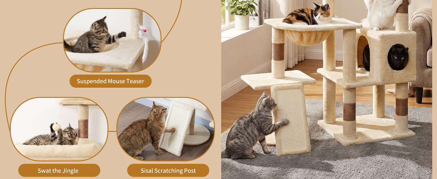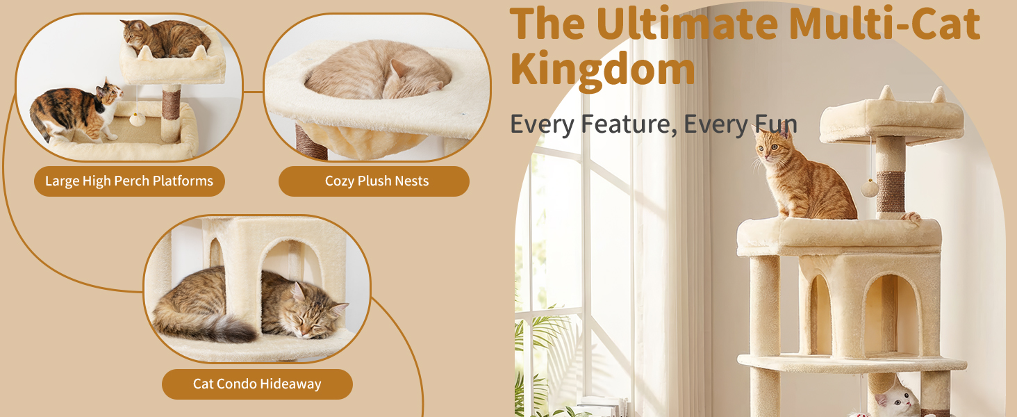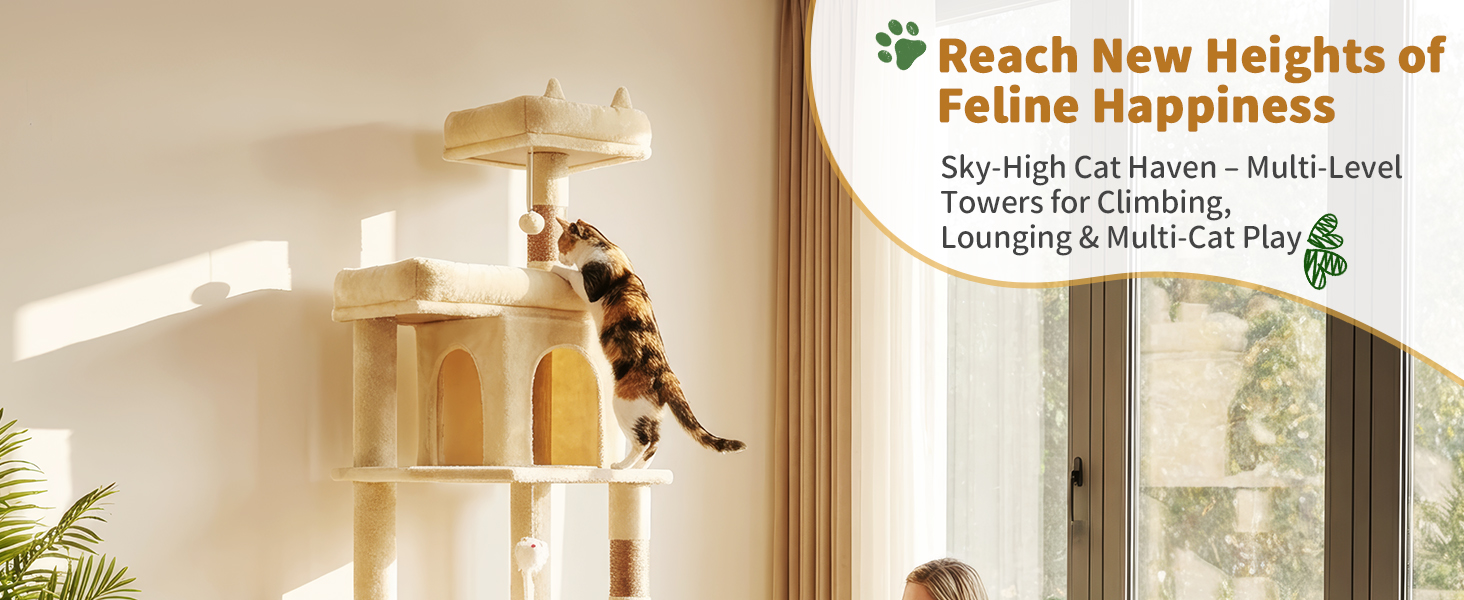 68 Inches Heavy Duty Cat Tree for Indoor Cat, Big Cat Tower with Sisal Scratching Posts and Top Perch, Large Platform for Adult Cats, PMT02BW, Beige