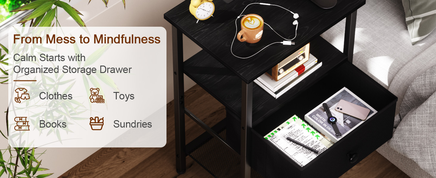 Fabric Nightstand Drawer with Generous Storage
