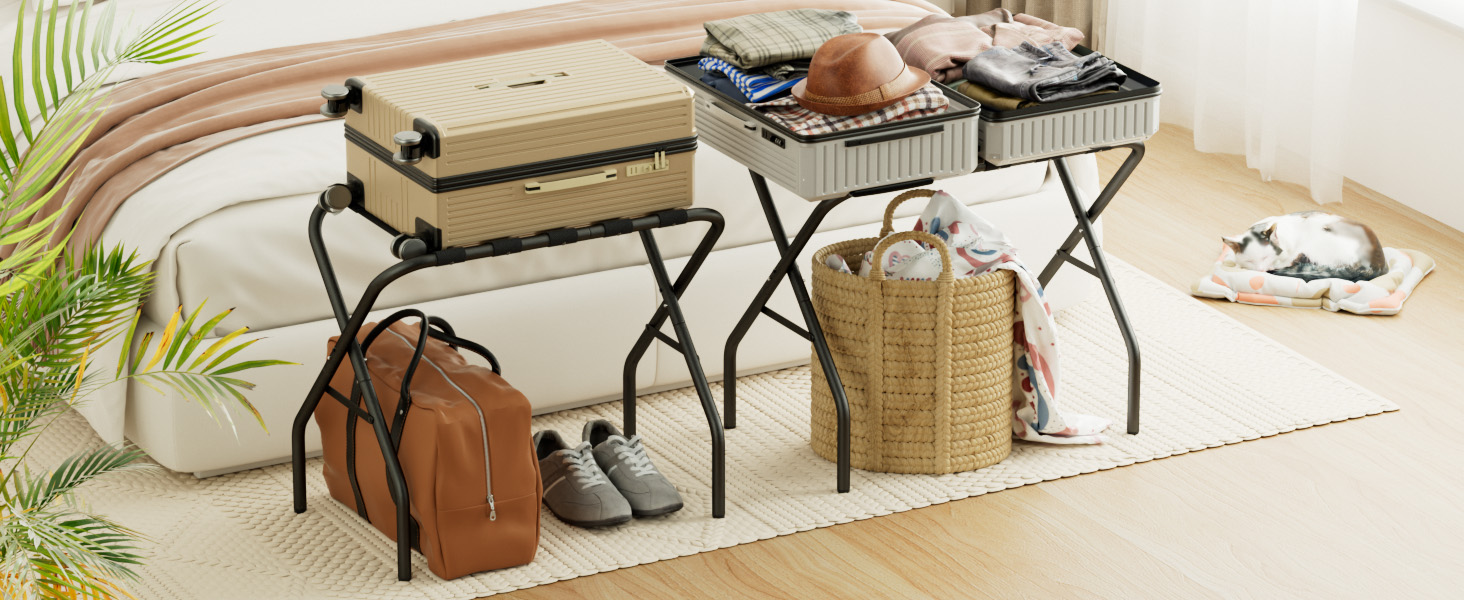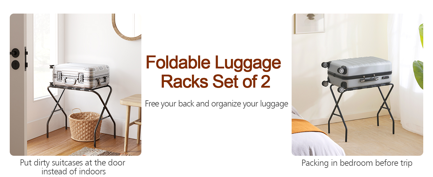 AMHANCIBLE Luggage Rack, Set of 2, Foldable Suitcase Stands, Metal Luggage Holder for Guest Room, Bedroom, Hotel, Holds up to 50 kg, Easy Assemble, Black HLR01BK