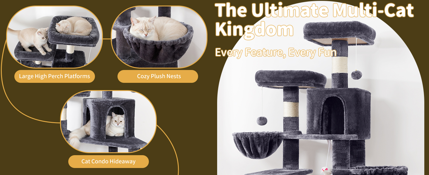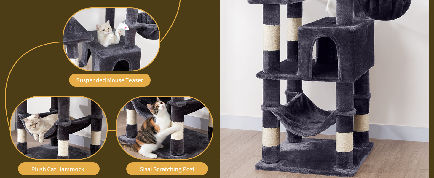 AMHANCIBLE Tall Cat Tree, 70 Inch Cat Tower for Indoor Cats, Multi-Level Cat Tree with Scratching Post, Hammock, Hanging Basket, Large Cat Condos for Adult Cats Kittens, Dark Grey, PT18DG