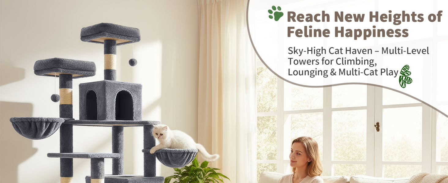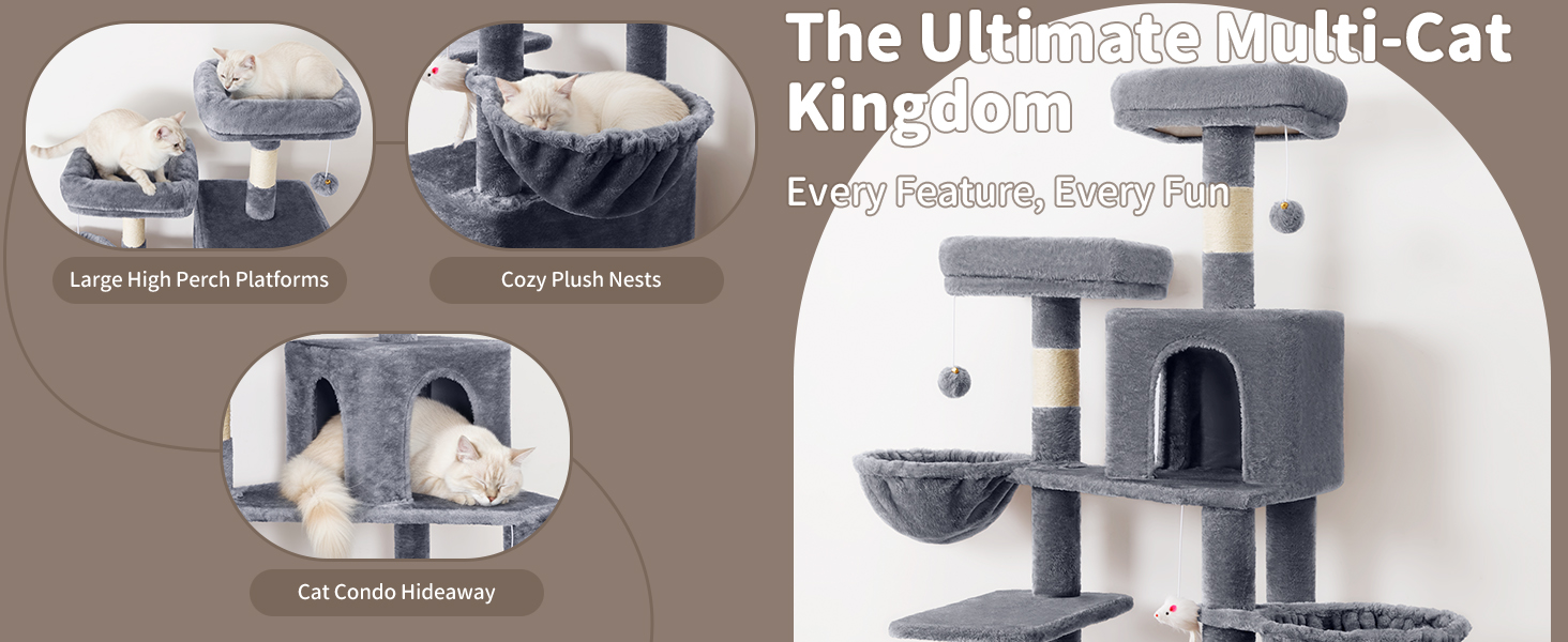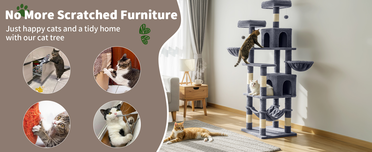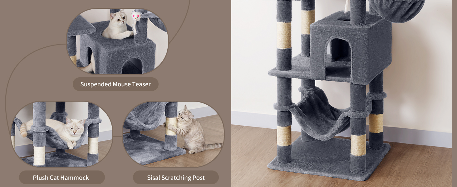 AMHANCIBLE Tall Cat Tree, 70 Inch Cat Tower for Indoor Cats, Multi-Level Cat Tree with Scratching Post, Hammock, Hanging Basket, Large Cat Condos for Adult Cats Kittens, Grey, PT18GY