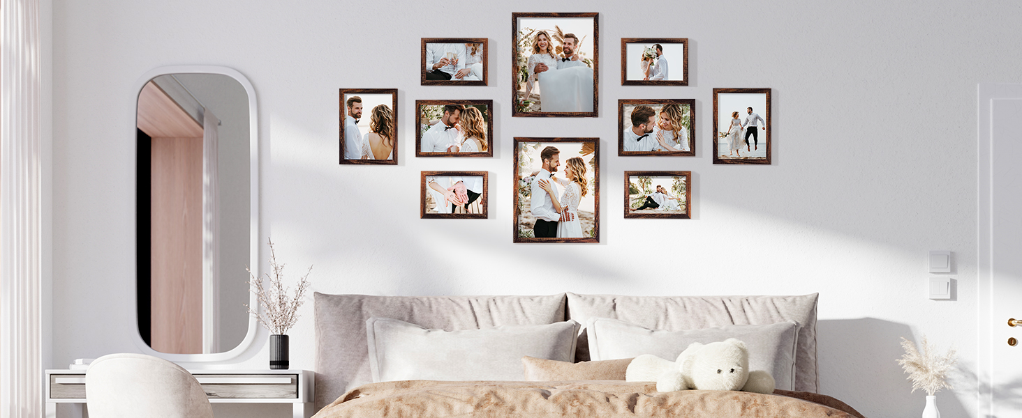 LOAKEKEL Photo Frames, Picture Frame Set of 10, Two 8x10, Four 5x7, Four 4x6, Collage Picture Frames, for Wall, Tabletop, Gallery Display, Multiple Sizes Photos, Brown HPFP10BR