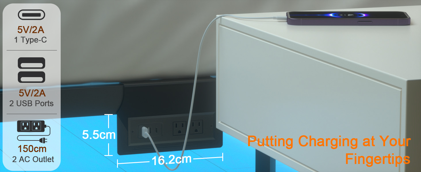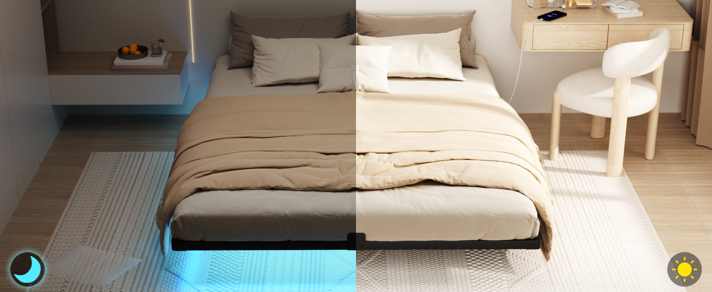 Blinking, Charging Station, LED Lighting, No Box Spring Needed, Reinforced Steel Support