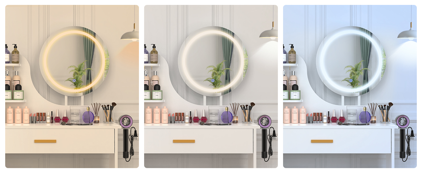 One-Touch Three-Speed Dimming to Suit Various Makeup and Moods