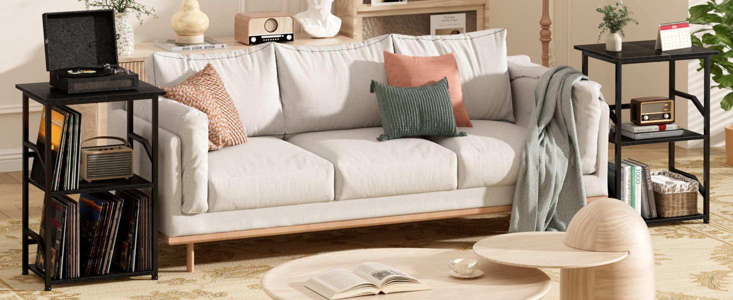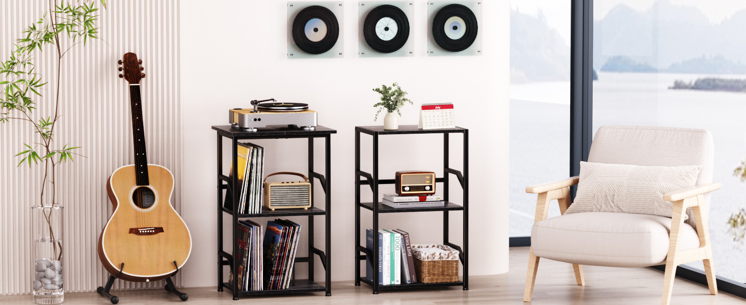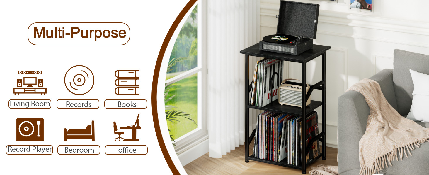 LOAKEKEL 唱片机支架,带超大桌面,黑色 HETCD020BK-1