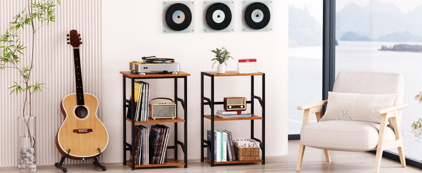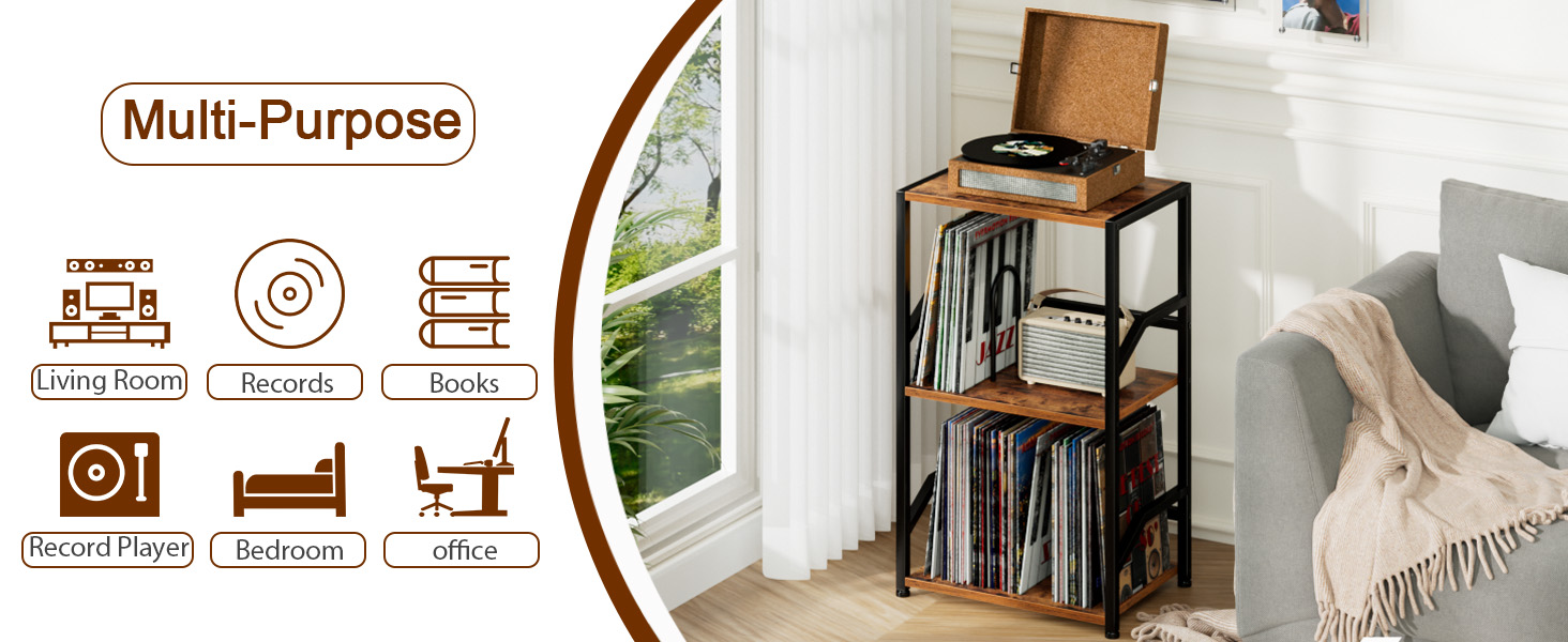 LOAKEKEL 唱片机支架带唱片收纳架 棕色 HETCD010BR-1