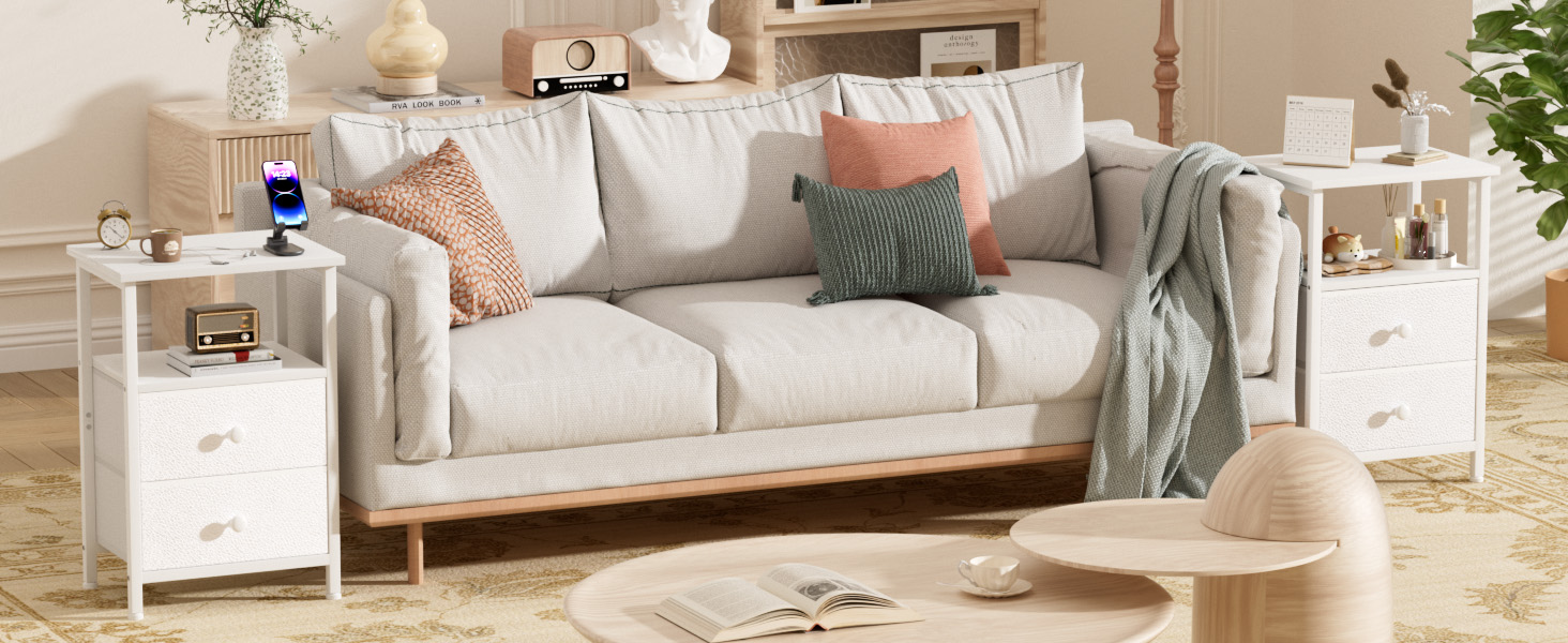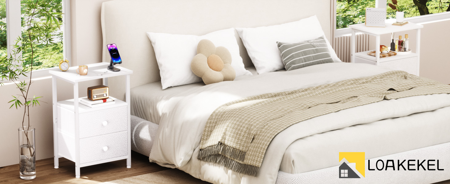 LOAKEKEL 白色布艺抽屉床头柜套装(2件)HETS002WP