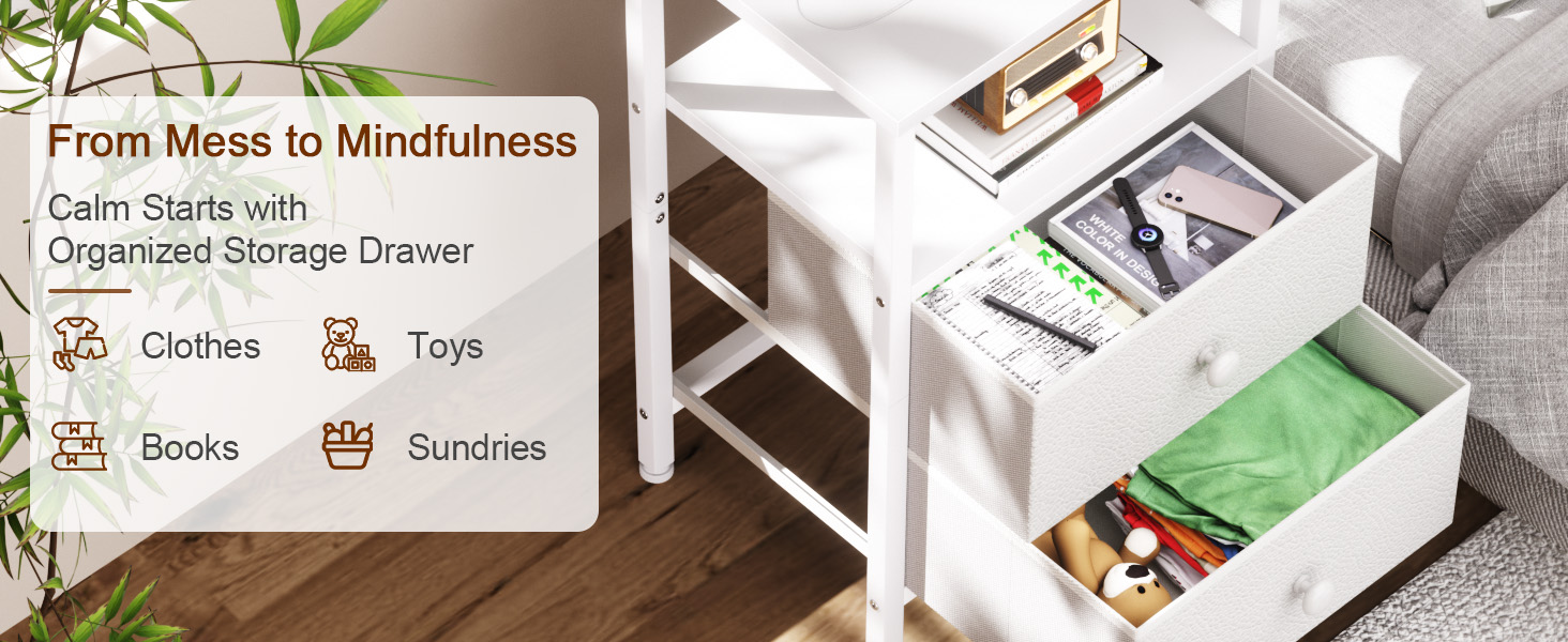 Fabric Nightstand Drawer with Generous Storage